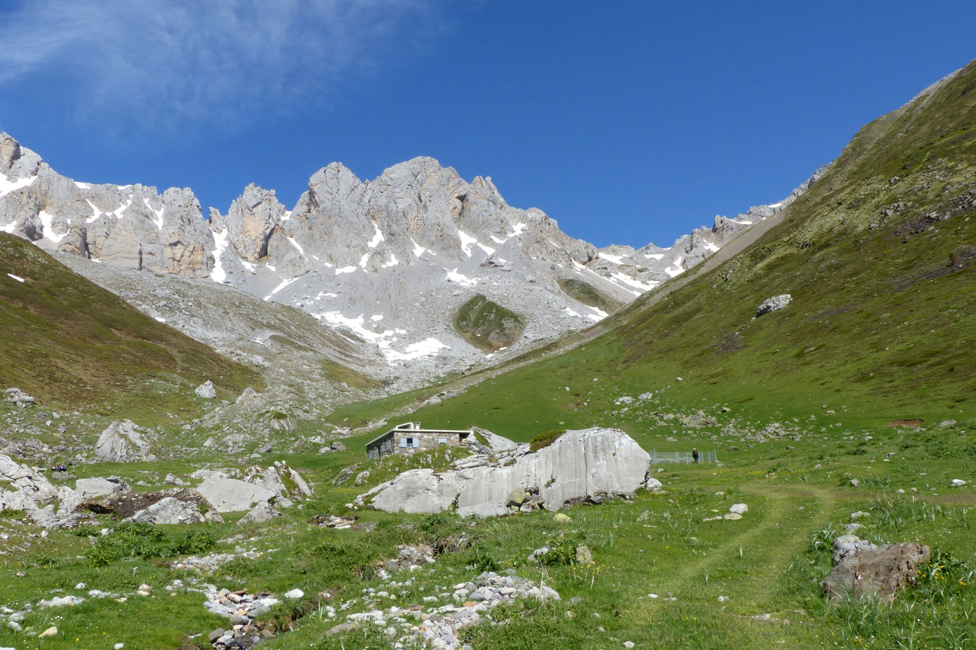 | Les Aiguilles d'Ansabère, le Mouscaté et les cabanes de Pédain |